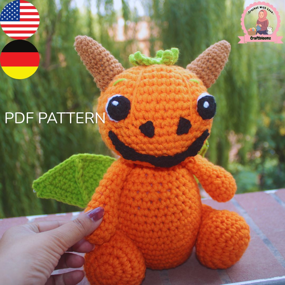 Pumpkin Dragon Amigurumi Crochet Pattern / Halloween Fall Decor PDF Tutorial